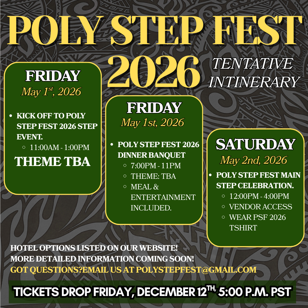 We are so excited you want to be a VENDOR at Poly Step Fest 2026. Every year our vendors sell out and our attendees leave home with so much goodies. We are looking for a range of Vendors (with limited spots) from apparel, food, drinks, accessories, and services as well. More information on VENDOR options coming out soon for Poly Step Fest 2026.